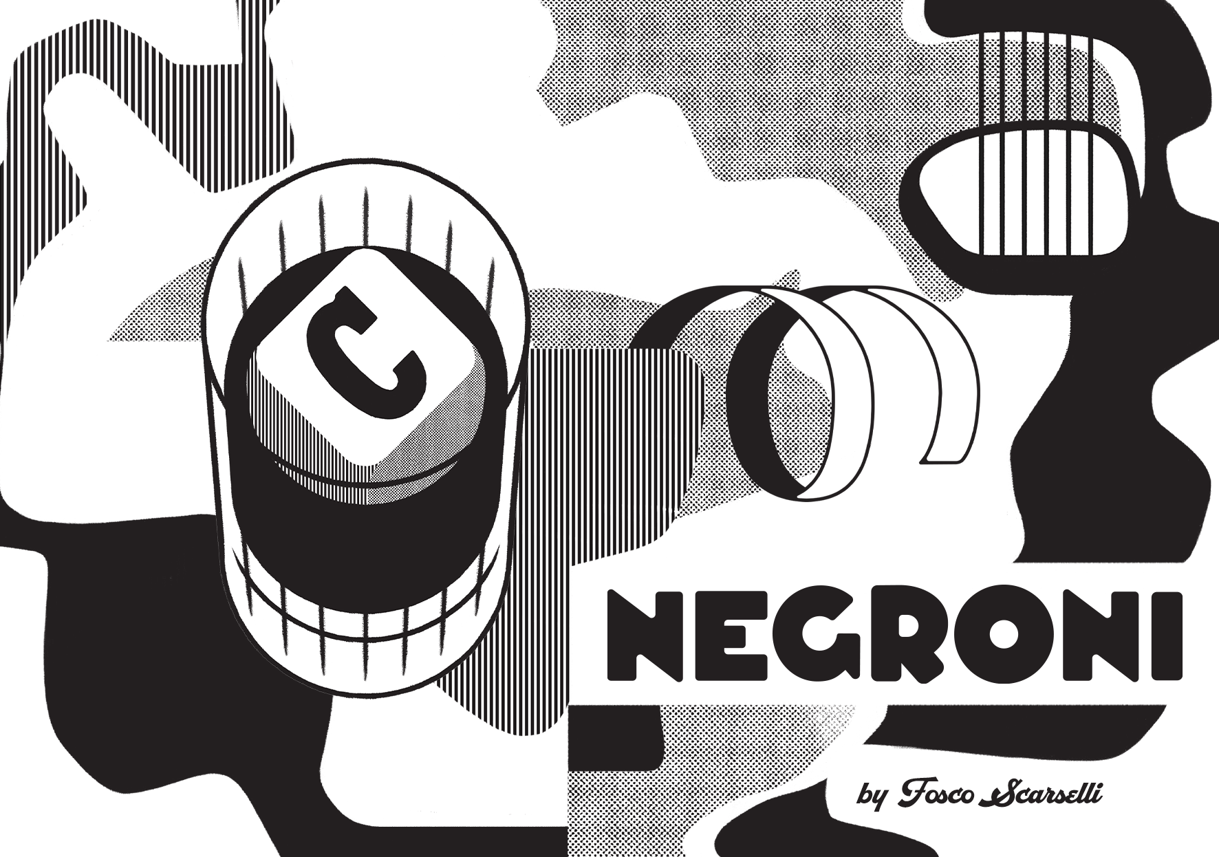 EN | For this project, we sought inspiration from century-old Campari posters, created by avant-garde artists of European modernism. Our creation process started from free handmade drawings, which were then cut and rearranged, producing organic and free forms that served as the basis for the final digital compositions, also composed with the glassware and the garnishes of each of the recipes. In addition to the illustrations, we built an typography, inspired by the letters created by graphic designer and futurist artist Fortunato Depero for the posters he developed for Campari at the beginning of the 20th century. From these compositions, we also developed matrices for engraving the coins, in a process of simplification, reduction and vectorization of the arts.